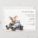 Invitación Ratón cutáneo acuarela en Baby Shower de auto azul