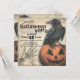 Un cuervo estelar sobre una linterna con un anticuado respaldo de papel rasgado y una mano esquelética adornan el frente de esta invitación a la fiesta personalizable de Halloween. En el fondo aparece una cruz céltica sombreada. ¡Una mirada aterradora para un gran fiesta atormentado! Al revés de esta invitación a la fiesta de Halloween se muestra el mismo ilustracion pero se voltea. ¡Disfruta tus festividades!