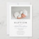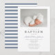 Personalizado Dusty Blue Stripes Elegant Photo Boy Baptism Invitation.