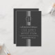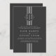 Bandas blancas e iniciales invitación a la boda gris carbón vegetal. Muestra franjas verticales blancas en el centro con un círculo con tus iniciales y dos corazones pequeños y tu texto. La parte posterior es de color gris oscuro y sólido.