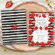 ¿Buscando una invitación de cumpleaños con el tema de fresa? ¡Mira nuestra invitación de primer cumpleaños a las franjas blancas negras modernas! Presenta una acuarela digital de color rosa, fresas rojas, rayas blancas y negras, flores blancas, hojas y un falso efecto digital de oro. Perfecto para un moderno fiesta de fresa de 1 cumpleaños, que le da un tono alegre y colorido. ¡Hermosa invitación de cumpleaños de fresa roja!