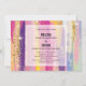 Invitación de boda con un diseño de fondo abstracto. Rayas vibrantes en colores intensos y pastel. Colores rosados, azules, morados y amarillos combinados con brillo dorado falso y chispas superpuestas.