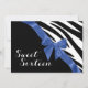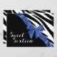 Celebra su dulce cumpleaños dieciséis con esta moderna y divertida invitación a imprimir en cebra animal acentuada con una cinta azul pavo real y un arco. Diseño completamente impreso, esta invitación no tiene una cinta o una proa real.