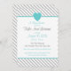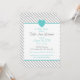 Dulces rayas de alfileres grises y blancos invitaciones a la ducha de bebés acentuadas en aqua con un corazón acuático. Personalice el texto como prefiera.