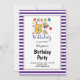 Esta "Invitación a la Fiesta de Cumpleaños de Rayas Púrpura/Blanca" presenta un marco rayado morado y blanco con un gráfico agradable. Prepárate para disfrutar de una ocasión memorable, pide hoy!