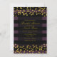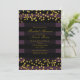 Rayas moradas y negras con puntos dorados de lámina falsa para invitaciones. Personalice la parte delantera y trasera para cualquier evento.