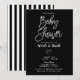 Invitación Rayas Negras y Blancas Ducha de Bebé Plateado y Ch