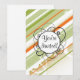Un moderno diseño retro divertido con rayas y burbujas, en tonos verde lima, verde manzana y naranja, con un sobrepuesto de plantilla de monograma de personalizable.
