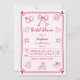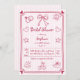 Guijarros pintados a mano de color rosa y blanco, un capricho retro estilo francés boda ducha de novia Invitación. Una invitación peculiar y caprichosa que presenta ilustraciones hechos a mano de varios doodles caprichosos que incluyen corazones, un anillo y un arco en magenta sobre fondo rayado rosa claro y blanco. El tipo de letra manuscrito y el marco con corazones en las esquinas le dan un toque delicioso, reflejando perfectamente la alegría y la emoción de su celebración de la ducha de novias.