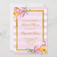Invitación Rayas rosadas marco dorado flor ducha de novia