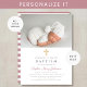 Personalizado Moderno Tiras Rosadas Invitación al Bautismo Religioso Cruzado.