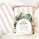 Invitación rayas rosadas retro palmera playa ducha bebé