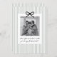 ¿Buscas una forma dulce y significativa de pedirle a tus seres queridos que sean los padrinos de tu bebé? Este diseño de tarjeta es la forma perfecta de hacer la pregunta. Ya sea que le estés preguntando a un familiar o a amigos cercanos, esta plantilla te ayuda a crear un momento emotivo que atesorarán para siempre. Este diseño presenta un fondo a rayas verde salvia y un lazo negro, junto con espacio para una foto de tu elección. Puedes editar el color de las rayas, el lazo y todo el texto en este diseño.
