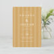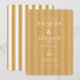 Esta elegante invitación de boda presenta un cálido fondo amarillo mostaza con sutiles rayas verticales que añaden textura y profundidad. El diseño emplea una fuente clásica serif para un aspecto sofisticado, enfatizando la unión de dos personas con un amplio espacio entre los nombres y los detalles clave. La disposición es limpia y bien organizada, lo que garantiza claridad y legibilidad, al tiempo que mantiene una formalidad discreta. Perfecta para parejas que buscan una estética atemporal y refinada, esta invitación marca el tono para una celebración memorable.