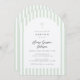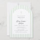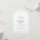 Sofisticada invitación de chico bautista que presenta un patrón de franja blanca y salvia y una cruz simple sobre un papel de "color envejecido". Para obtener una ropa de cama de primera calidad texturizada, elija el tipo de papel "Laid".