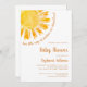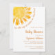 Esta tierna invitación a una ducha de bebé gemela incluye el texto "Dos pequeños rayos de sol están casi aquí!" con un sol de color amarillo acuático. Perfecto para una ducha para bebés sin diferencias de género. Personalizable fácil. Acuarela original © Michele Davies.