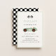 Tema del coche de carrera retro, invitación para fiesta de cumpleaños. Sage Green Race Car ilustracion y soporte de patrón de damas.