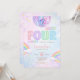 Get ready to party with this fun and colorful birthday invitation! Featuring a sparkling disco ball, soft pastel rainbows, clouds, and playful typography, this invitation is perfect for celebrating a magical 4th birthday.