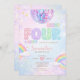 Invitación Ready FOUR a party Disco Rainbow Birthday