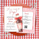 This fun baby shower invitation features a retro soda bottle with a pretty red bow and can be personalized with your details set in stylish typography. The reverse features your event details and registry QR code on a red gingham background. Designed by Thisisnotme©