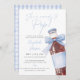 This fun baby shower invitation features a retro soda bottle with a pretty blue bow and can be personalized with your details set in stylish typography. The reverse features a blue gingham background. Designed by Thisisnotme©