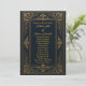 Invitación de Boda Elegante con Hojas Negras y Doradas Haz una declaración con esta impresionante invitación de boda negra y dorada, diseñada para exudar sofisticación regia y belleza atemporal. Con intrincados acentos de hojas doradas sobre un fondo negro profundo, esta invitación es perfecta para parejas que buscan agregar un toque de grandeza a su día especial. Elaborada con materiales premium y una estética refinada, establece el tono para una celebración inolvidable.