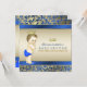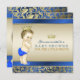 Hermoso damasco azul y dorado con invitación a la ducha de bebé del pequeño príncipe real. Esta elegante invitación a la ducha para bebés de príncipe azul y dorado se personaliza fácilmente para tu evento simplemente añadiendo tus detalles en el estilo de letra, color y redacción de tu elección.