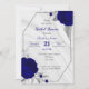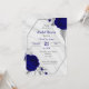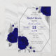 elegante romántico flor azul real y hojas grises plateadas geométrica botánica de lujo ducha de novia invitación Los detalles purpurinas se simulan