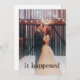 Este anuncio de boda de foto rústica recién casados y la invitación a la recepción presentan las palabras "sucedió" en tipografía rústica y desgastada sobre su propia foto y la información de la boda y la recepción en el reverso, y es la tarjeta perfecta para anunciar su fuga. Fácil de personalizar con su propia foto y texto. Perfecto para la recepción que se celebra en una boda en un granero, boda al aire libre, o lugar de boda en una granja.