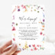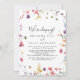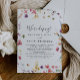 Esta tarjeta de recepción, de color clásico y colorido, es perfecta para un fiesta poselectoral moderno. El diseño se compone de flores silvestres amarillas, violetas y blancas con follaje en un fondo de color rosa y verde. Las tarjetas RSVP se venden por separado.