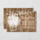 Tarjetas de recepción de boda con luces de cuerda y floreros mason de Baby's Breath rústico.