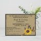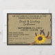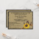 Invitaciones de estilo rústico con girasoles y herraduras, con aspecto de arpillera para una recepción de boda de estilo barbacoa informal. Todas las partes de esta invitación están impresas.