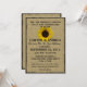 Invitaciones rústicas de estilo campestre con girasoles para una recepción de boda informal al estilo de una barbacoa. Hermoso girasol sobre arpillera, invitación totalmente impresa.
