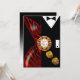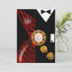 Una elegante pareja art déco vestida de etiqueta - ella con un vestido rojo de cebra de escote bajo y él con un elegante esmoquin negro. La pieza central es una ficha de casino que contiene texto personalizado y dados dorados que caen. Ya sea que se case en Las Vegas o se quede en su ciudad natal y organice un evento con tema de casino, esta invitación versátil y trendy es perfecta para cualquier ocasión especial: fiestas de jubilación, cumpleaños importantes, cócteles y cenas, cenas de ensayo, recepciones de boda, aniversarios, eventos semiformales y formales o veladas festivas de vacaciones. Fácil de personalizar, use el botón "Personalizar" arriba para agregar su propio texto. También disponibles pegatinas de favor personalizadas. Para preguntas o solicitudes especiales, por favor contacte al diseñador en cheryl@cheryldanielsart.com. Si esta invitación no es exactamente lo que está buscando, todos mis productos pueden ser diseñados a medida para satisfacer sus necesidades específicas. Invitación "Recepción de Boda Art Déco de Las Vegas" por Cheryl
