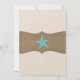 Invitación de estilo rústico campestre a una recepción de boda informal de estilo barbacoa. Estrellas occidentales y diseño inspirado en cuero en tonos cálidos marrones y azul aqua.