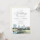 Esta invitación para la recepción de la boda presenta una pintura de acuarela del horizonte de Fort Worth, Texas y una fuente manuscrita elegante. Edite fácilmente la mayoría de la redacción para que coincida con su evento.