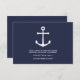 Esta tarjeta de recepción presenta una ilustración de ancla blanca con detalles en estilo de fuente sans serif moderna sobre fondo azul marino.
