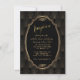Invitación de Boda Vintage Art Déco de Gran Gatsby de los Años 20. Un diseño de tarjeta inspirado en la década de 1920 en negro y dorado presenta forma ovalada vintage con hoja de oro falsa y ornamentos, un hermoso estilo Art Déco como fondo. Utilice la herramienta de personalización para agregar su información. Vea también, mi Colección Art Déco Encantador de Gran Gatsby. La década de 1920 fue una época de prohibición, gánsteres, fiestas clandestinas, música jazz y chicas flapper.