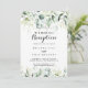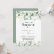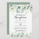 Esta invitación de recepción de boda con eucalipto en acuarela es perfecta para una fiesta rústica después de una fuga. Este diseño artístico presenta follaje verde de eucalipto pintado a mano en acuarela, inspirando belleza natural.