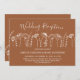 Invitación de recepción de boda con flores silvestres de terracota naranja quemada con diseño floral lineal simple. Tema botánico delicado con borde de flores silvestres en arte lineal blanco y tipografía de letra manuscrita elegante. Por favor, explore mi colección de Bocetos de Flores Silvestres para encontrar artículos que coincidan.