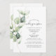 Invitación a la recepción de boda con follaje de eucalipto que puede personalizar fácilmente haciendo clic en el botón "Personalizar". Reutilice completamente esta plantilla de diseño para otras ocasiones especiales en su vida haciendo clic en "Editar con herramienta de diseño" debajo del botón "Personalizar" para cambiar el color de fondo, las fuentes y el diseño