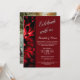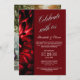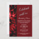 Una invitación moderna y personalizada de celebración post-boda con flores rojas.