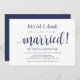 Esta tarjeta de invitación temática de boda con fuga rústica de azul marino (puedes personalizar todos los colores) es perfecta para tu recepción de boda y fiesta de celebración post-boda. Agrega tus detalles en fuente / letra coincidente.
