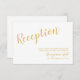 Suite de Invitación de Boda con Guión Moderno en Blanco y Dorado: Tarjeta de Recepción de Boda con título en fuente de guión moderno dorado y detalles en fuente sans serif moderna dorada sobre fondo blanco. Tenga en cuenta: los detalles de foil son simulados en el arte. No se utilizará foil real en la fabricación de este producto.