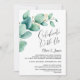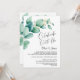 Invite a sus amigos y seres queridos a su recepción después de la boda con esta invitación de hojas de eucalipto verde acuarela para celebrar su matrimonio reciente.