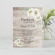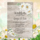 Invite a sus amigos y seres queridos a su boda con esta invitación de recepción de boda con madera rústica de granero y margaritas blancas. Esta invitación es perfecta para parejas que han elegido casarse en una ceremonia privada y desean compartir su alegría con amigos y seres queridos.