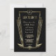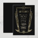 Glamour único, diseño de tarjeta vintage con una forma art déco dorada falsa con un escudo para tus iniciales, Fleur-de-lis doradas falsas como herencia real, un estilo Roaring Twenties Great Gatsby, estilo antiguo Hollywood, fuentes hermosas en un fondo negro. Utiliza la herramienta de personalización para agregar tu información. Para más, visita mi Colección de Bodas con Monograma Art Déco Royal Gold.