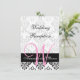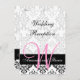 Monograma rosa en patrón de damasco único negro y blanco, invitación personalizable para recepción de boda. Hermosa invitación de recepción de boda con monograma rosa en damasco. Diseño de Elke Clarke© para Monogram Gallery. Utilízala como tarjeta insertable en tu paquete o kit de boda o envíala por separado a los invitados que solo estén invitados a la recepción de la boda. Personaliza con tu monograma, nombres y texto de invitación a la recepción de boda. Para más opciones de edición, usa "personalizar" para cambiar el espaciado del texto y los colores. O contacta con luxuryweddinginvitations@gmail.com para obtener ayuda. Gráficos con licencia de uso.