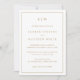 Anuncio de boda simple con invitación solo para recepción con un diseño moderno y elegante con su monograma de dos letras en la parte superior y sus detalles rodeados de un borde delgado. Todo el texto está en un falso dorado, sobre un fondo blanco y la parte posterior es negra sólida. Las fuentes y los colores de fondo se pueden cambiar a cualquier color que desee haciendo clic en el botón "personalizar". Un diseño elegante y con estilo que es ideal para una pareja minimalista. Esta invitación de recepción es ideal si ya está casado y quiere celebrar con familiares y amigos.