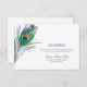 Tarjeta de recepción de boda elegante con pluma de pavo real al agua.